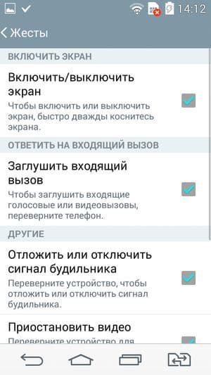 Многое можно перенастроить по своему вкусу, например изменить размер и даже цвет фона виртуальных клавиатур, назначить дополнительные функции кнопкам регулировки громкости, отрегулировать ряд управляющих виртуальных кнопок в нижней части экрана. Имеется достаточно широкая поддержка работы с жестами: отложить сигнал будильника, приостановить проигрывание в плеере, заглушить вызов — все это можно проделать с помощью жестов.