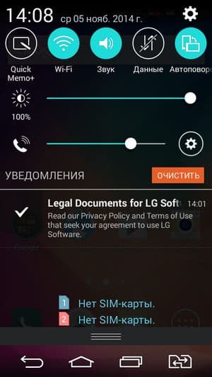 В нижней части под экраном аппаратных кнопок нет, все они теперь стали наэкранными. Традиционно для двухсимочных аппаратов LG здесь имеется не три, а целых четыре кнопки, одна из которых, дополнительная, отвечает за быструю смену приоритетной SIM-карты. В прошлых бюджетных аппаратах LG все эти кнопки были аппаратными и сенсорными, но подсветки не имели, так что переход их в наэкранную форму можно считать большим плюсом — теперь в темноте кнопки хорошо видно, к тому же их взаимное расположение можно самостоятельно поменять в настройках системы.