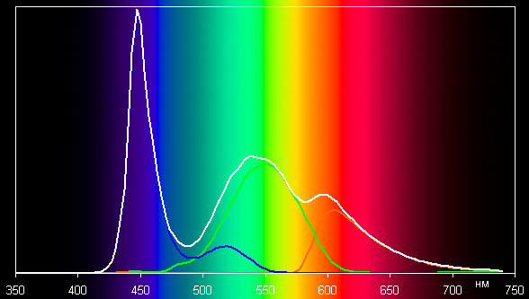 Спектры показывают, что светофильтры матрицы слегка подмешивают компоненты друг к другу: