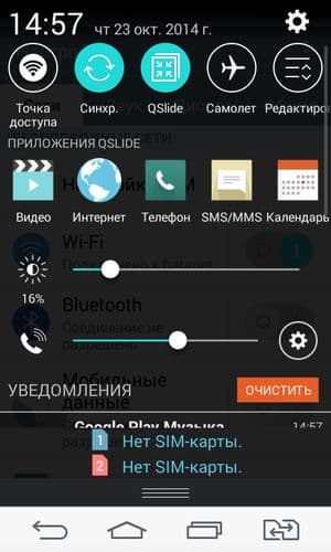 LG L Fino работает в данный момент на программной платформе Google Android версии 4.4.2. Поверх интерфейса ОС компания установила собственный пользовательский интерфейс LG Optimus UI, значительно видоизменяющий и дополняющий стандартный. Прорисовка элементов стала крупнее, на экран многое не влезает. Например, меню уведомлений с его массой разнообразных элементов даже не способно продемонстрировать на первом экране ни одного уведомления — все место занимают ряды иконок быстрого доступа, ползунки регулировки яркости и громкости, да ряды приложений QSlide. Для того чтобы увидеть собственно уведомления, приходится прокручивать меню, а это частенько приводит к его сворачиванию.