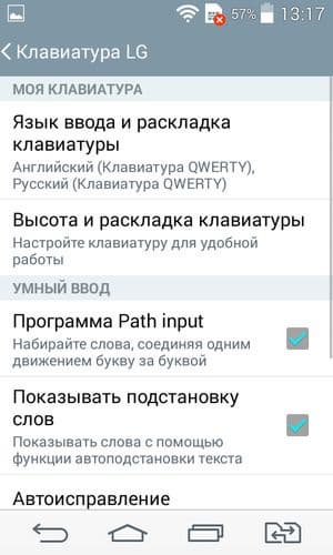 Прорисовка букв и цифр виртуальных клавиатур достаточно мелкая, но есть возможность изменить высоту букв, а также задействовать и кое-какие другие улучшение, например обустроить по своему усмотрению нижний ряд управляющих кнопок. Раскладка клавиш на штатной клавиатуре стандартная: переключение языков здесь осуществляется нажатием на специальную кнопку, выделенного верхнего ряда с цифрами нет — необходимо каждый раз переключать раскладку. Телефонное приложение поддерживает Smart Dial, то есть во время набора телефонного номера сразу осуществляется и поиск по первым буквам в контактах. Для любителей Swype предусмотрен метод безотрывного ввода росчерком от буквы к букве (Path input).