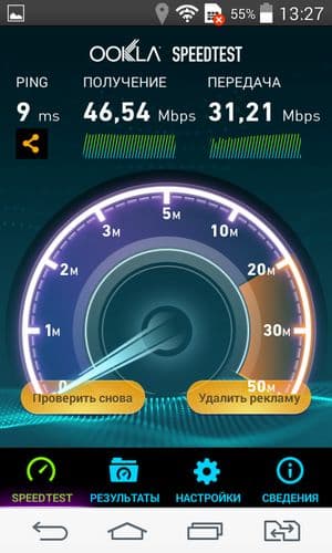 Смартфон стандартно работает в современных сетях 2G GSM и 3G WCDMA; поддержки сетей четвертого поколения (LTE) здесь нет. Скорость передачи данных теоретически ограничивается режимом HSPA+ (до 21 Мбит/с), так указано в официальных спецификациях. Однако нам ни разу так и не удалось зафискировать на смартфоне значок «H+» в тех же самых местах, где другие смартфоны находят и HSPA+, и даже LTE. Что касается сети Wi-Fi, то в домашних условиях с роутером Asus RT-N16 в качестве точки доступа герой обзора продемонстрировал скорость подключения в 46 Мбит/с.