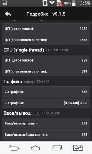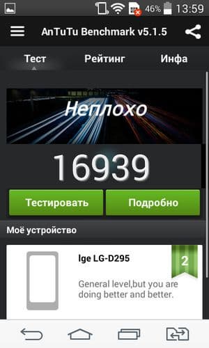 По результатам тестирования в бенчмарках смартфон LG L Fino ожидаемо можно отнести к разряду аппаратов со средним (или даже чуть ниже среднего) уровнем производительности, типичным для данной платформы. В целом, на текущий момент аппаратной производительности смартфона должно хватать для выполнения большинства основных задач, которые могут поставить приложения из Google Play Store, не считая самых требовательных игр, так как видеоподсистема испытуемого демонстрирует достаточно скромные результаты в специализированных графических тестах.