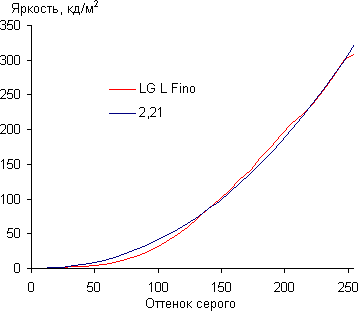 Контрастность (примерно в центре экрана) высокая — порядка 1260:1. Время отклика при переходе черный-белый-черный равно 23 мс (12 мс вкл. + 11 мс выкл.). Переход между полутонами серого 25% и 75% (по численному значению цвета) и обратно в сумме занимает 35 мс. Построенная по 32 точкам с равным интервалом по численному значению оттенка серого гамма-кривая не выявила завала ни в светах, ни в тенях. Показатель аппроксимирующей степенной функции равен 2,21, что практически равно стандартному значению 2,2. Однако при этом реальная гамма-кривая существенно отклоняется от степенной зависимости и имеет S-образный характер, что приводит к повышению контраста: