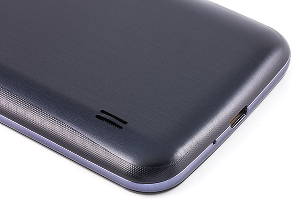 Скользких и марких деталей здесь практически нет: задняя крышка, которая, в общем-то, и составляет бо́льшую часть корпуса, выполнена из матового пластика с нанесенными на внешнюю поверхность текстурами. Основная часть крышки выглядит так, как будто по ней прошлись крупной шкуркой, а боковые части ее украшены узором мелкой пупырчатой структуры. Кстати, на этом месте стоит заметить, что в зависимости от цвета корпуса текстура внешнего покрытия задней крышки различна: у белого варианта пупырчатая вся поверхность крышки, а не только боковые грани.