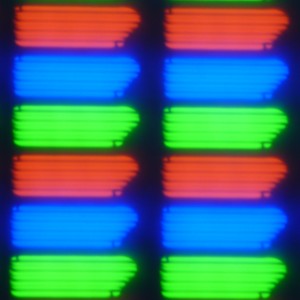 В данном смартфоне установлена матрица типа IPS. Микрофотография демонстрирует типичную для IPS структуру субпикселей: