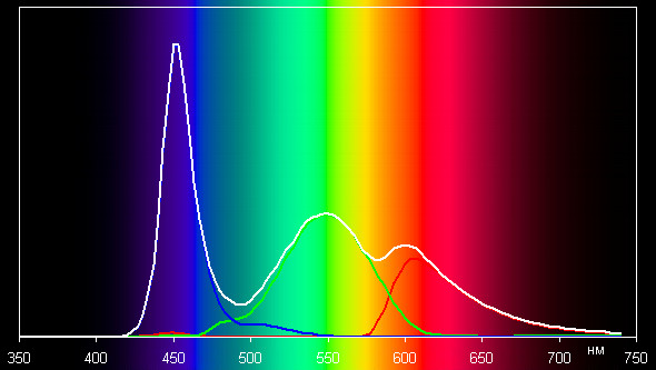 Спектры показывают, что светофильтры матрицы в умеренной степени подмешивают компоненты друг к другу: