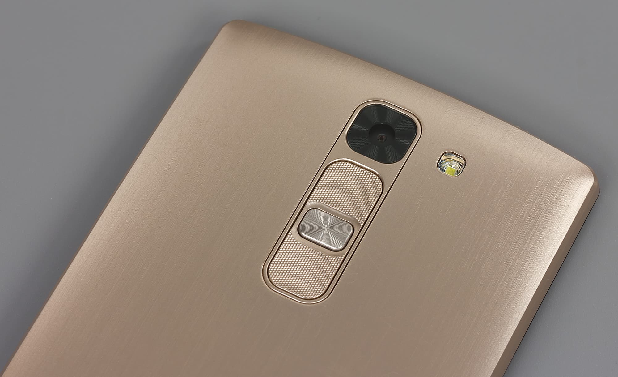 Поверхность крышки вокруг кнопок имеет текстурированность под вид грубо ошкуренного металла. Поверхность немаркая и не очень скользкая. Сами кнопки слегка утоплены и имеют еще более шероховатую текстуру, так что их легко нащупать вслепую. Кнопки имеют стандартное назначение: центральная клавиша отрабатывает включение и блокировку смартфона, а две других, сверху и снизу, отвечают за регулирование громкости. Расширенные возможности блока аппаратных кнопок обеспечивают дополнительную функциональность в управлении: долгое удержание верхней кнопки запускает приложение Qmemo, нижней — активирует камеру.