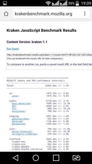 Что касается бенчмарков для оценки скорости движка javascript, то стоит всегда делать скидку на то, что в них результаты существенно зависят от браузера, в котором запускаются, так что сравнение может быть истинно корректным только на одинаковых ОС и браузерах, а такая возможность имеется при тестировании не всегда. В случае с ОС Android мы всегда стараемся использовать Google Chrome.