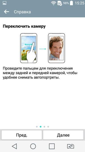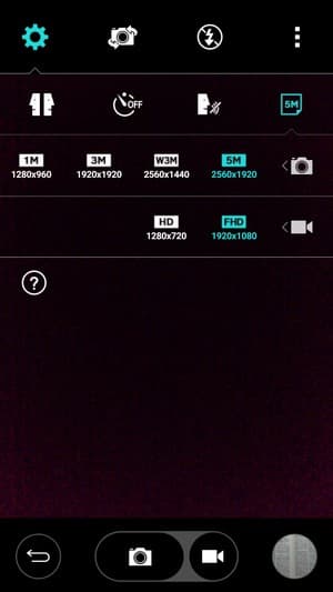 Основная, тыльная камера оснащена 8-мегапиксельным сенсором и объективом с диафрагмой f/2,4 с автофокусом и собственной светодиодной вспышкой. Меню настроек точно такое же, как и в прошлогодних моделях LG, в этом плане ничего не изменилось. Меню крайне лаконичное, настройки объединены в несколько горизонтальных полосок, появляющихся по мере необходимости. Иконки и подписи к ним прорисованы мелко, на ярком солнце они бывают трудноразличимы. Обычно в настройках интерфейса камеры смартфонов находится возможность задействовать разнообразные режимы съемки: панорама, серийная, спорт, HDR. Здесь все гораздо проще: помимо стандартного автоматического режима других режимов не предусмотрено.