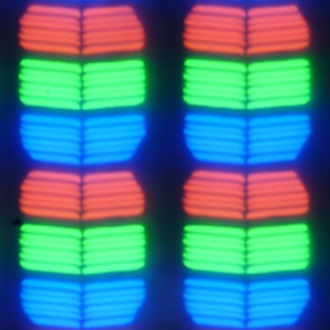 В данном смартфоне используется матрица типа IPS. Микрофотографии (если приглядеться) демонстрируют типичную для IPS структуру субпикселей:
