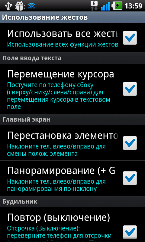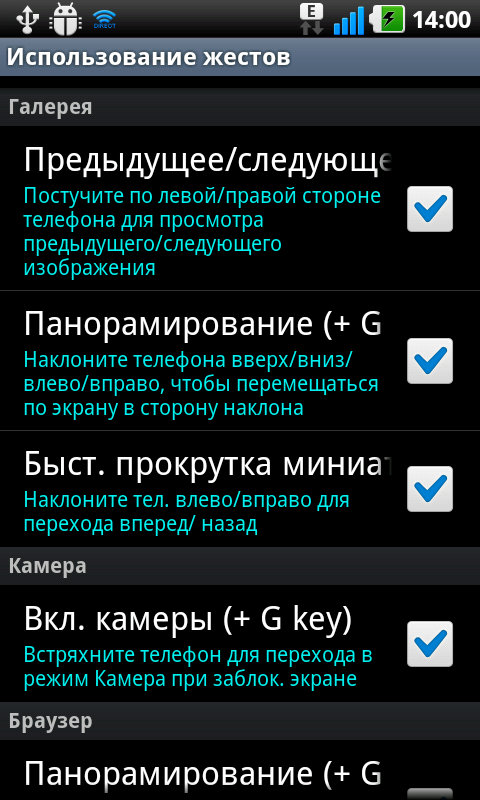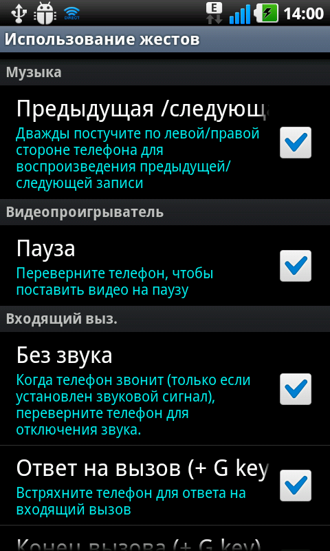 Функция управления коммуникатором с помощью жестов и информации от датчика ускорений — одна из интересных особенностей LG Optimus Black. Для тонкой настройки отклика различных программ на перемещения мобильного компьютера в реальном пространстве предусмотрено обширное меню.