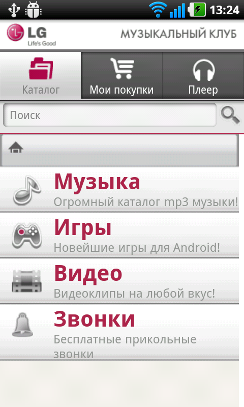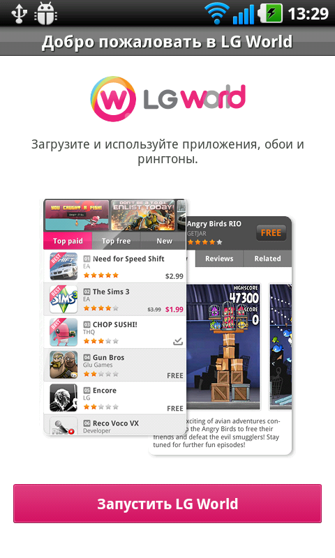 Список программ выглядит следующим образом: LG MusicClub — приложение для доступа, приобретения и загрузки музыки, видеоигр, рингтонов; FBReader — популярная «читалка» электронных книг различных форматов; клиенты Facebook и Twitter. Кроме того: программа «Новости и погода»; клиент интернет-магазина «Озон.ру»; LG World — еще одно приложение для загрузки обоев, рингтонов, прочих программ с сайта компании.