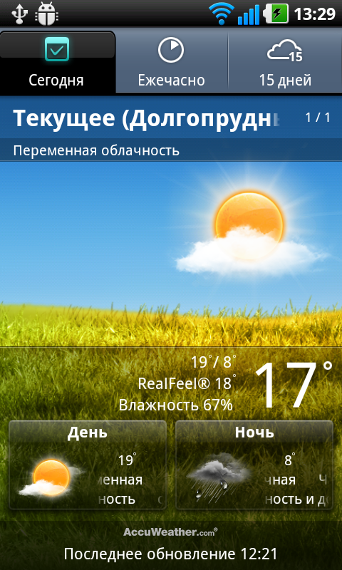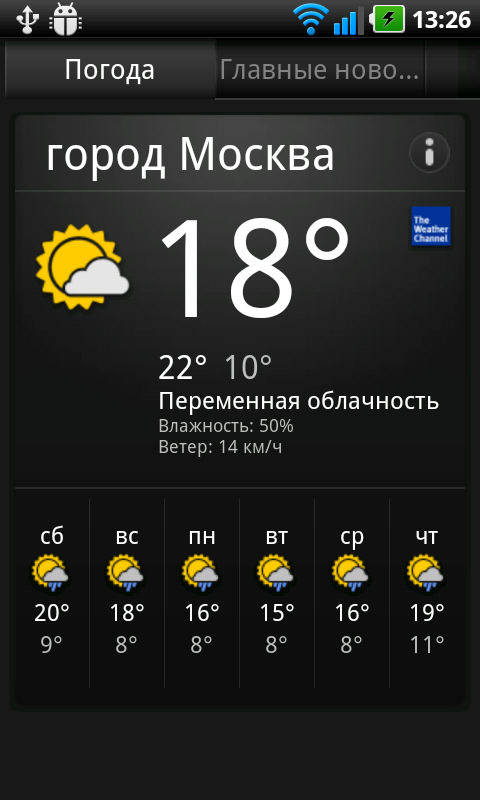 Уже на вкладках основного экрана системы можно обнаружить многочисленные виджеты и иконки приложений. Среди них: аналоговые часы, погода с цифровыми часами AccuWeather, виджет сайта «Одноклассники», виджет социальной сети «ВКонтакте».