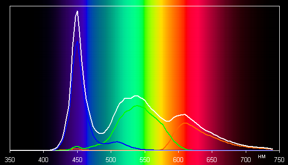 Спектры показывают, что светофильтры матрицы в умеренной степени подмешивают компоненты друг к другу: