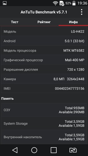 По результатам тестирования платформа показала результаты ожидаемо скромные, ниже среднего значения (в районе 20К в AnTuTu), даже если сравнивать с другими современными платформами начального уровня. По уровню производительности SoC MT6582 оказывается даже немного слабее популярной современной платформы начального уровня Qualcomm Snapdragon 410. В итоге по уровню производительности аппаратной платформы смартфон LG Spirit относится скорее к начальному уровню.