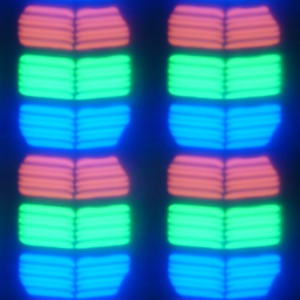 В данном смартфоне используется матрица типа IPS. Микрофотографии (если приглядеться) демонстрируют типичную для IPS структуру субпикселей: