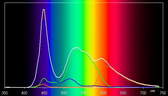 Видимо, светофильтры матрицы подмешивают компоненты друг к другу. Спектры это подтверждают: