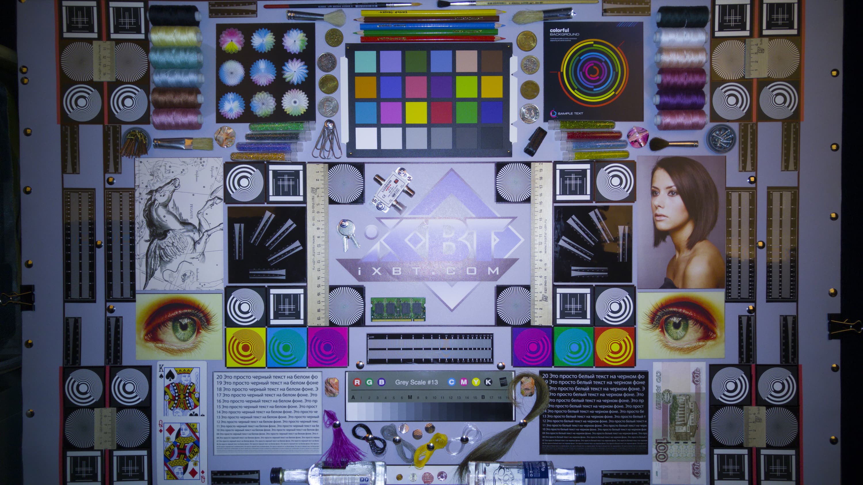 Отметим хорошую равномерность яркости и цветового тона белого поля. И тестовая картинка: