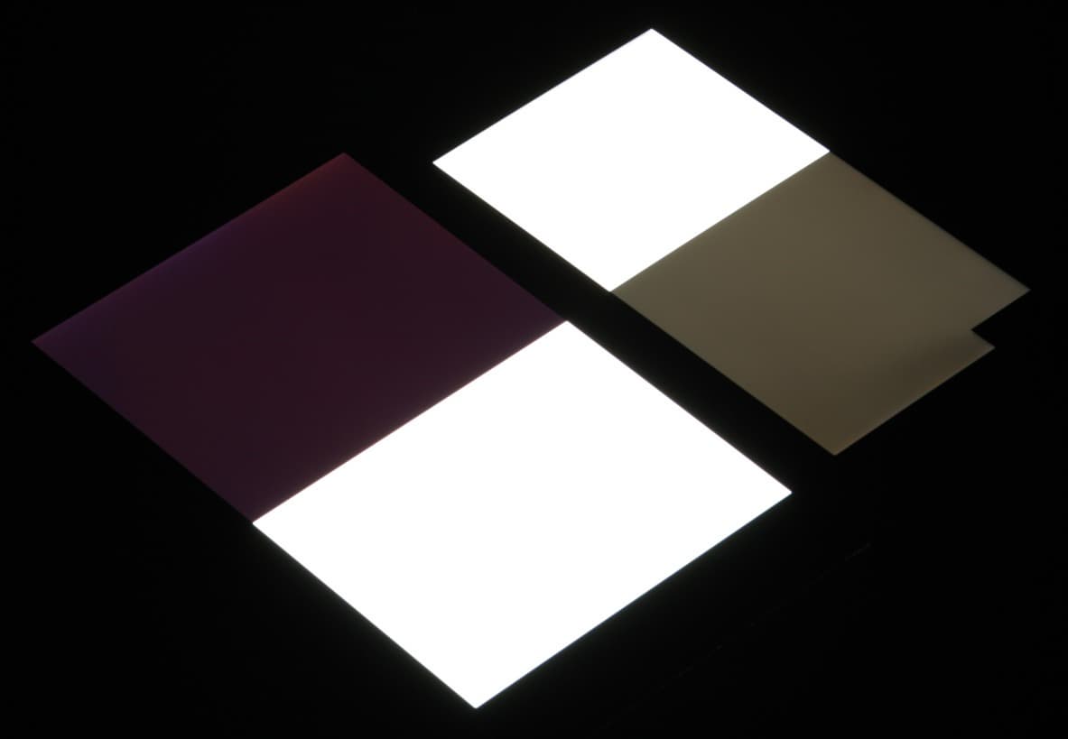 При перпендикулярном взгляде равномерность черного поля неидеальная, так как яркость черного по краю местами заметно повышается: