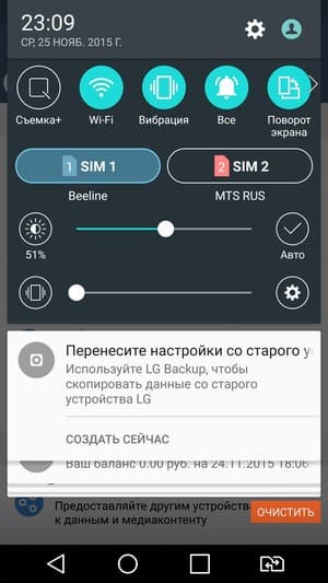 Смартфон обеспечивает работу с двумя SIM-картами по стандарту Dual SIM Dual Standby. Не считая специальной кнопки для быстрой смены приоритетной SIM-карты, реализация работы с двумя SIM-картами в целом стандартна для данной платформы. Радиомодуль здесь один, поэтому активный разговор может быть только один. С сетями 3G/4G может работать SIM-карта в любом слоте, однако одновременно в этом режиме может работать лишь одна из карт (вторая будет работать только в 2G). Выбор между двумя SIM-картами для осуществления вызова, отправки SMS и пр. традиционно для аппаратов LG осуществляется с помощью отдельной кнопки быстрого переключения приоритетной карты, расположенной в ряду виртуальных кнопок управления.