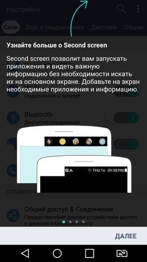 Никуда не исчез и фирменный режим Knock Code, хотя теперь разблокирование смартфона гораздо удобнее выполнять с помощью сканера отпечатков. Комбинацию виртуальных кнопок управления в нижней части экрана можно изменить и подстроить под свой вкус, реализована поддержка жестов. Правда, здесь отсутствует ставшая уже привычной в смартфонах LG функция быстрого просмотра даты, времени, входящих сообщений жестом сдвига вниз без необходимости включать экран (Glance View) — она не нужна ввиду наличия второго, постоянно функционирующего дисплея.