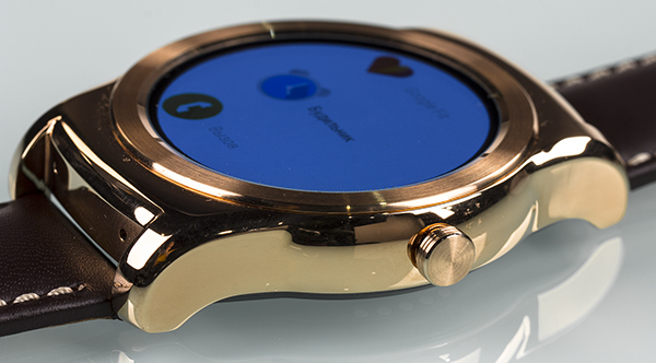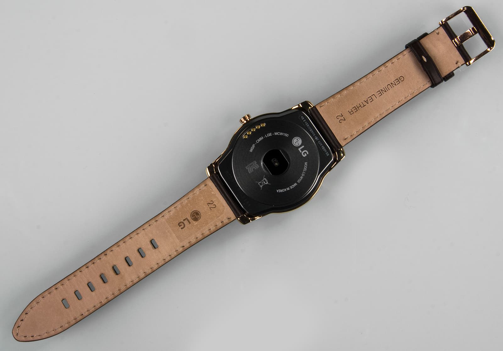 Общие впечатления от дизайна — смешанные. Мне корпус часов, приехавших на тестирование, кажется слишком громоздким и не нравится его цвет, выглядящий как дешевая имитация золота. Однако кожаный ремешок, наоборот, произвел приятное впечатление. Кроме того, порадовали небольшие, но действенные изменения, которые дизайнеры внесли в форму корпуса, сделав ее более плавной и изящной по сравнению с LG G Watch R (хотя и все равно не сумев преодолеть тяжеловесности).
