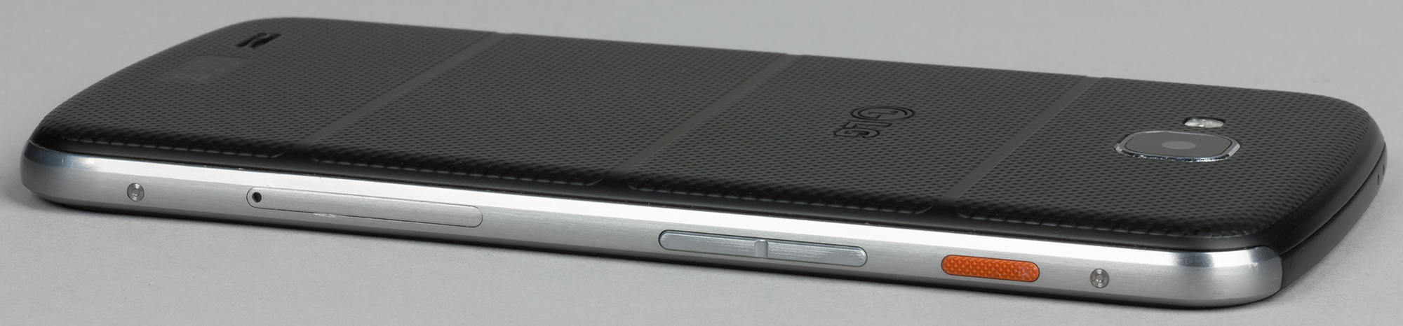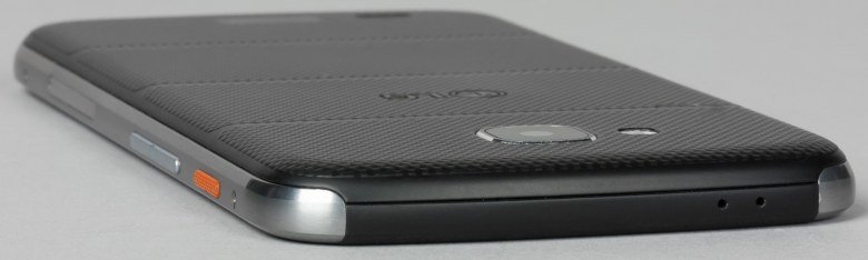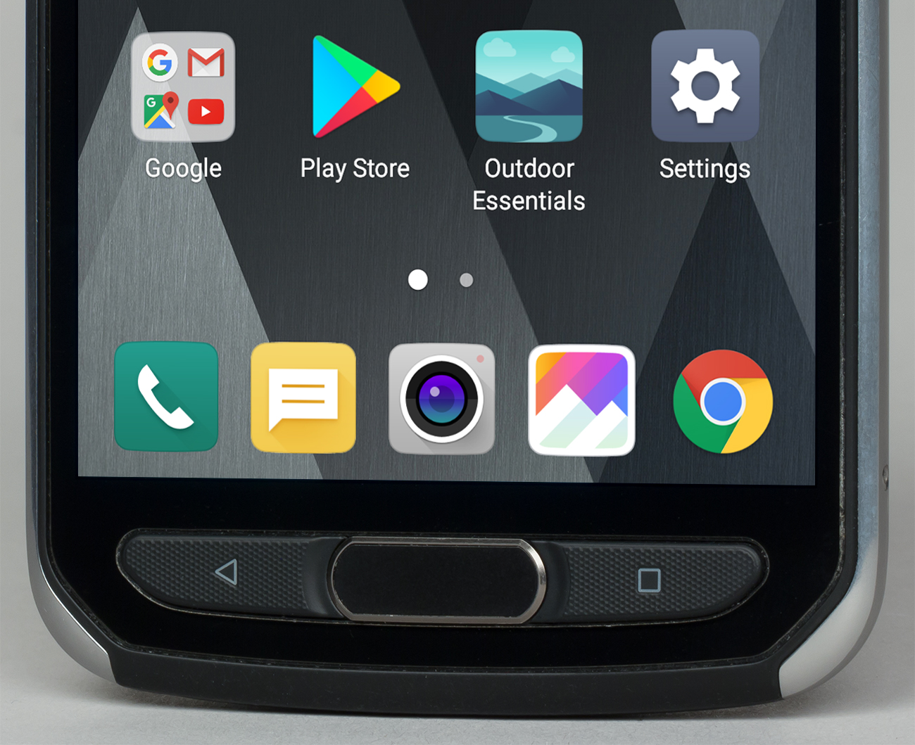 Сканер отпечатков пальцев поместили в центральную аппаратную механическую клавишу под экраном на передней панели. По бокам от нее установлены еще две механических кнопки, и это вполне логично в случае «внедорожника», поскольку под водой и в мокрых пальцах экран отрабатывает прикосновения плохо или не отрабатывает их вовсе.