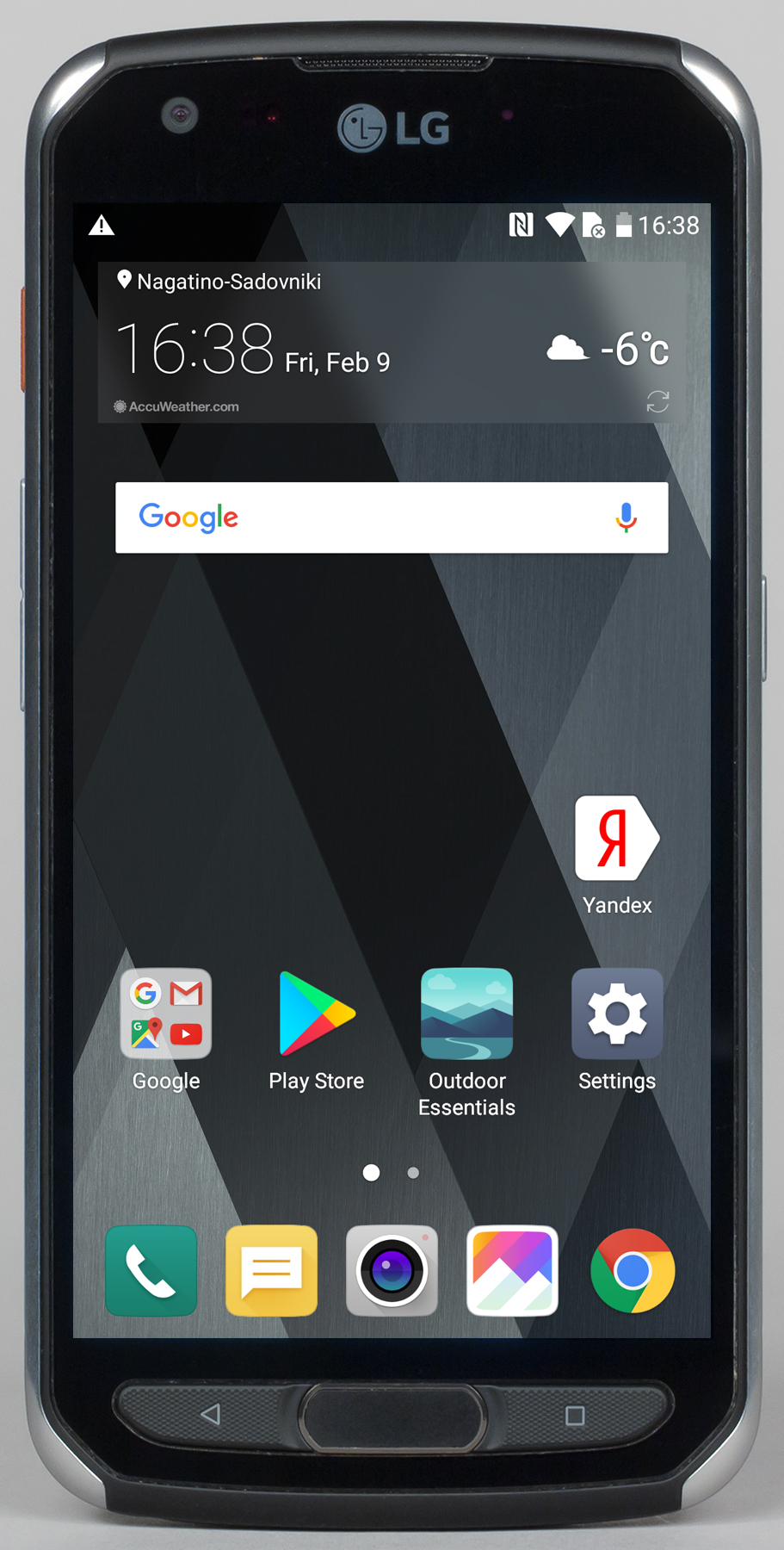 Дизайн для своего защищенного смартфона LG выбрала в целом знакомый, нечто подобное мы не раз уже встречали у самых разных производителей. Здесь мы видим самый, так сказать, «цивильный» из всех возможных вариантов мобильных внедорожников, без толстой ребристой резины, грубых металлических накладок и герметичных крышек, закручивающихся монеткой. Металлические накладки, правда, остались, но они весьма изящно вписались в образ, аккуратно огибая боковины и совершенно не огрубляя симпатичный дизайн и обтекаемые формы корпуса.