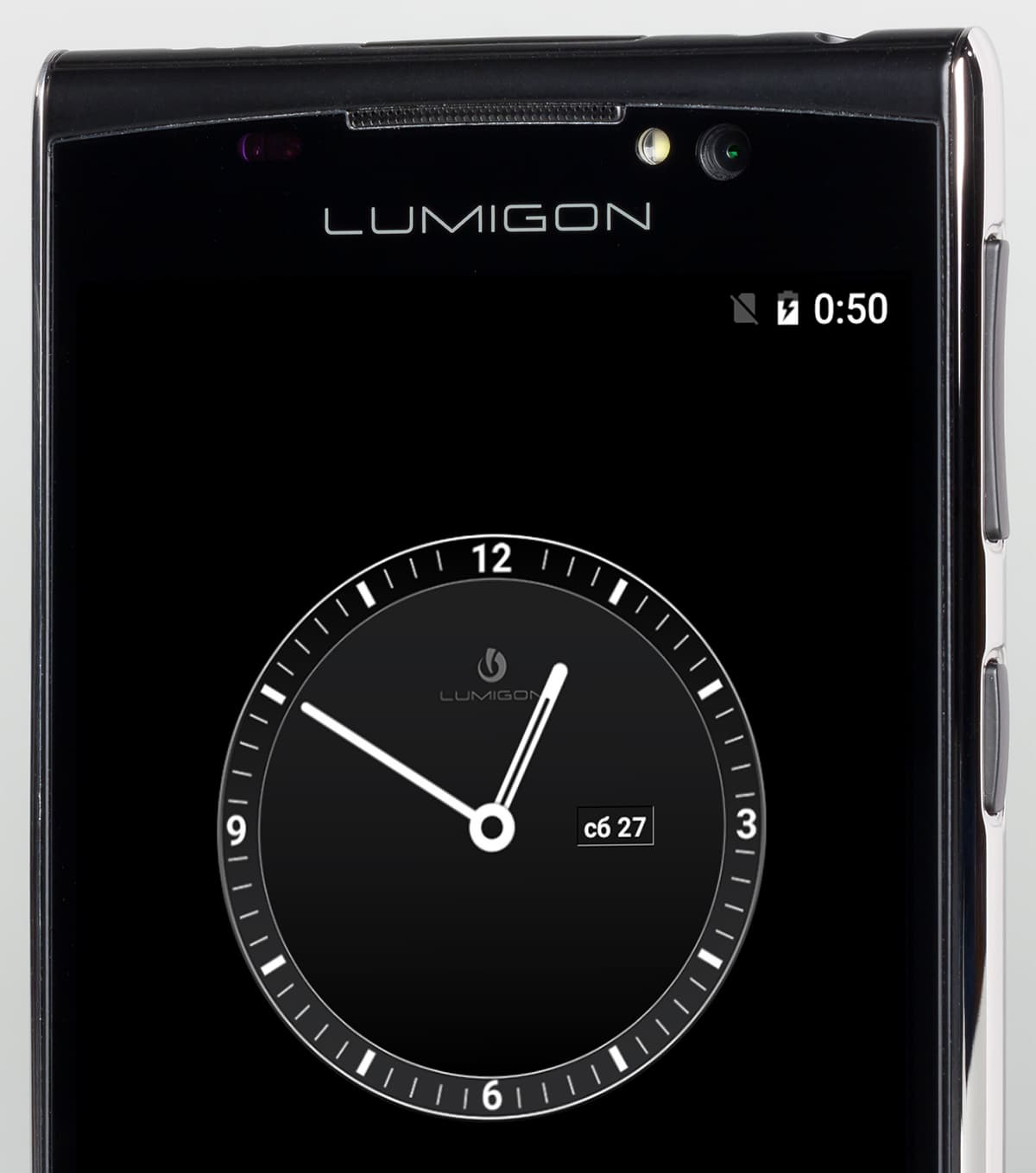 Lumigon T3 оснащен дисплеем Super AMOLED с размерами 60×106 мм при диагонали в 4,8 дюйма и прикрыт плоским стеклом Gorilla Glass 4. Разрешение экрана составляет лишь 1280×720, даже не Full HD, поэтому плотность точек тут — всего около 306 ppi. Рамка вокруг экрана широкая, по бокам от края корпуса до экрана — 5 мм, сверху — 17 мм, снизу — 14 мм.