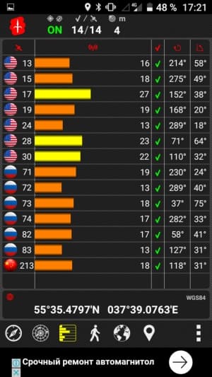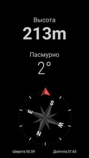Навигационный модуль поддерживает три спутниковые системы навигации — GPS, Глонасс и Beidou. К работе модуля навигации никаких претензий нет, первые спутники при холодном старте обнаруживаются в течение первых десятков секунд, положение фиксируется с минимальной погрешностью. Смартфон оснащен датчиком магнитного поля, на основе которого работает магнитный компас. Среди сенсоров, кстати, обнаружились и менее распространенные в смартфонах датчики температуры и высоты над уровнем моря.