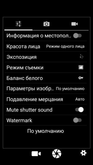 Меню настроек основной камеры здесь самое обычное, стандартное, хорошо знакомое по множеству китайских аппаратов на платформе MediaTek. Оно простое по виду, состоит из трех разделов. Вручную можно выставлять экспозицию, светочувствительность (до ISO 1600), баланс белого, яркость, контрастность, насыщенность и резкость, можно выбирать дополнительные режимы вроде ночного и спортивного, есть режим HDR, функция обнаружения лиц, улыбки, а также возможность съемки по жесту. Передавать управление настройками камеры сторонним приложениям с помощью Camera2 API нельзя, возможности записи снимков в RAW тоже нет.