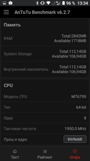 - SoC MediaTek MT6795 (Helio X10), 8 ядер ARM Cortex-A53 @1,95 ГГц