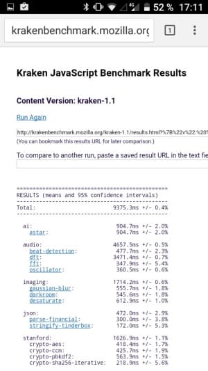 Что касается бенчмарков для оценки скорости движка javascript, то стоит всегда делать скидку на то, что в них результаты существенно зависят от браузера, в котором запускаются, так что сравнение может быть истинно корректным только на одинаковых ОС и браузерах, а такая возможность имеется при тестировании не всегда. В случае с ОС Android мы всегда стараемся использовать Google Chrome.