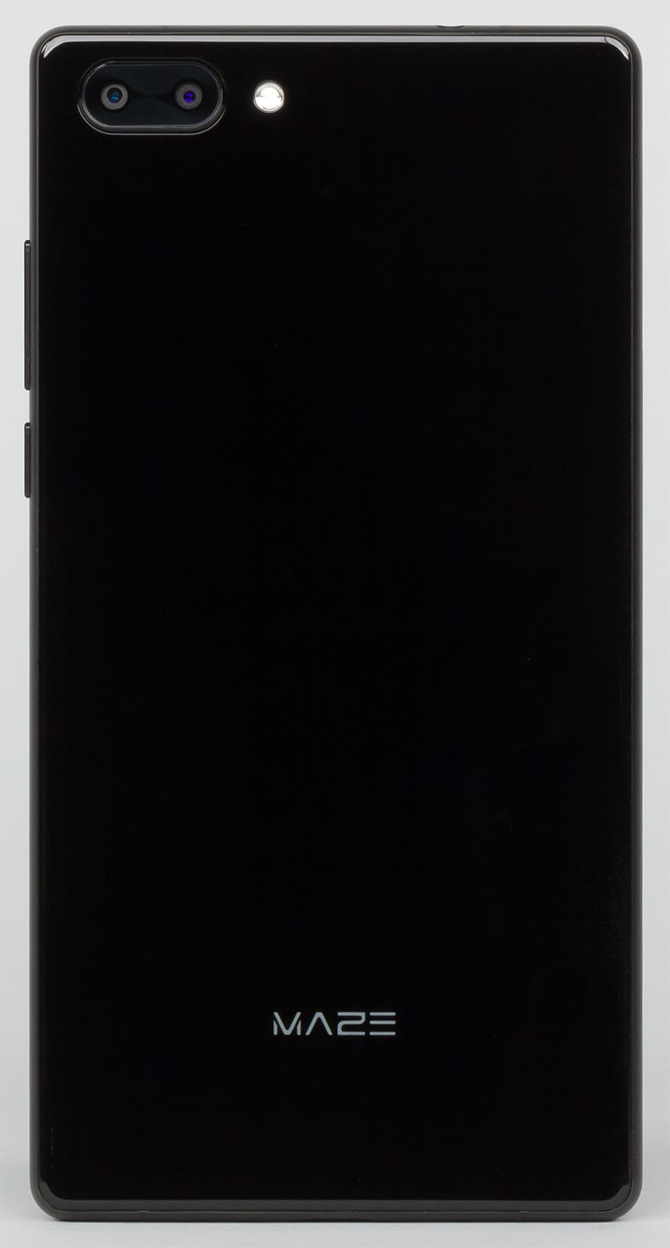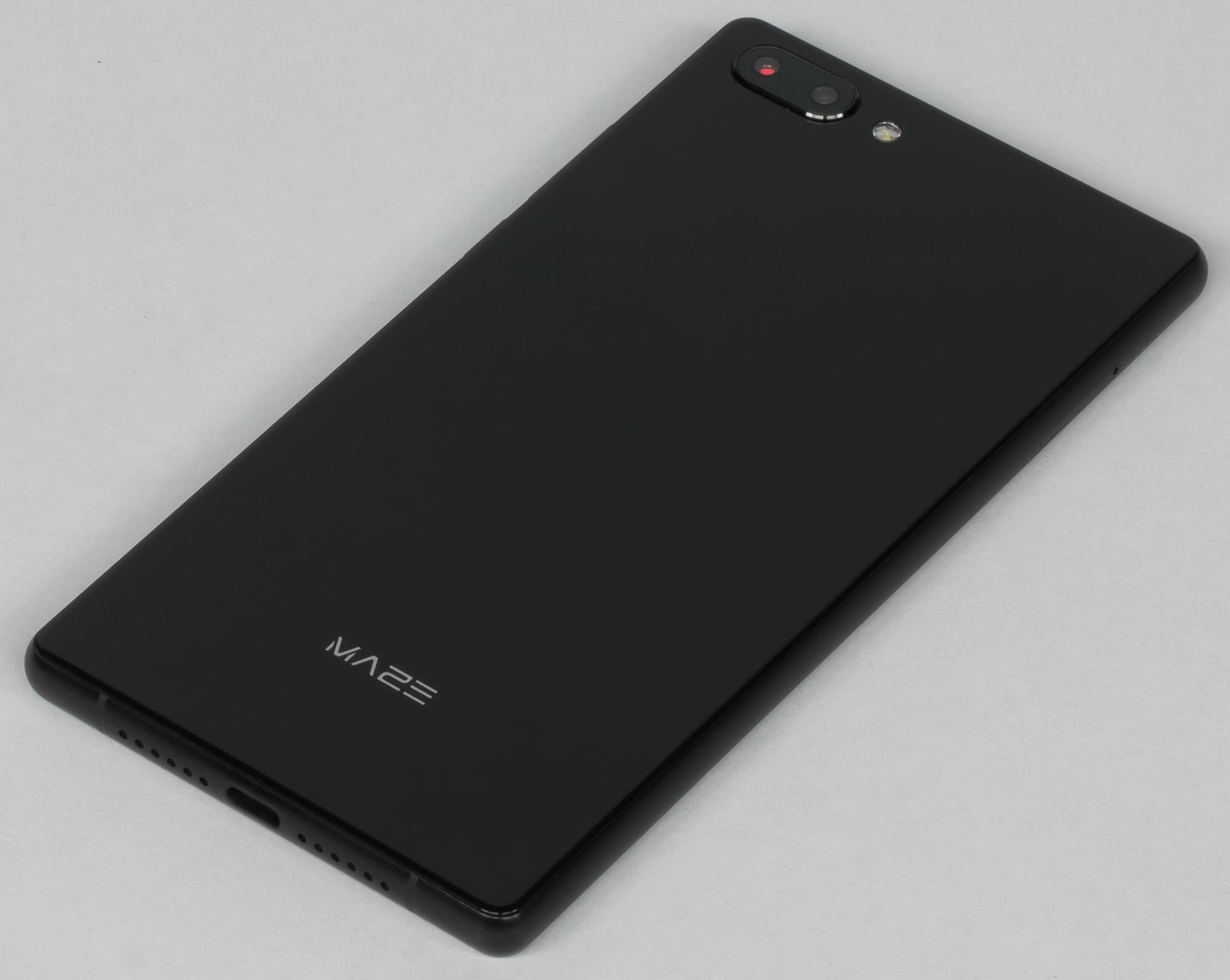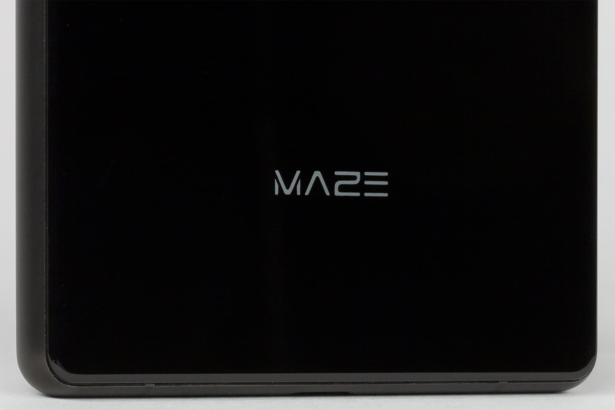 Maze Alpha получил неброский на вид корпус аккуратной, но очень простой формы. Никаких изящных изгибов задней крышки, никаких хромированных элементов — просто черный параллелепипед с ровными прямыми панелями и несильно закругленными углами в плане.