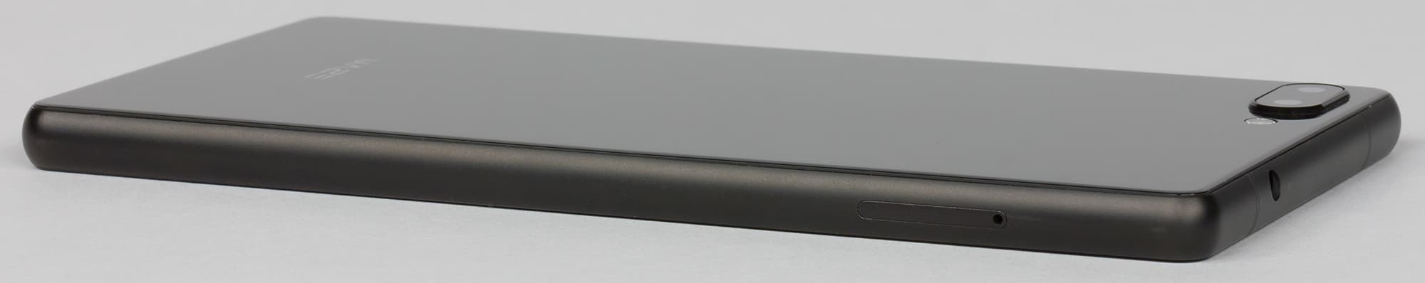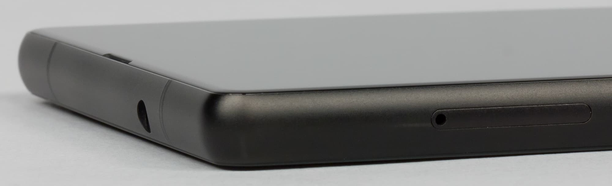 Разъем для карточек, расположенный на левой грани, гибридный: в один из слотов вставляется карта Nano-SIM, в другой — карта памяти или вторая SIM-карта формата Nano-SIM.