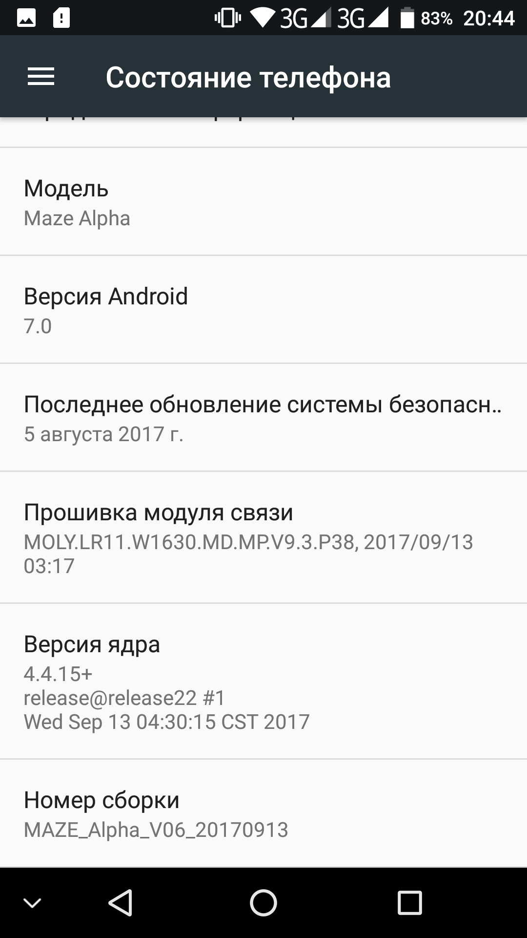 Аппаратная платформа Maze Alpha строится на однокристальной системе MediaTek MT6757 (Helio P25), выполненной по 16-нанометровой технологии. В состав этой SoC входят восемь 64-битных ядер ARM Cortex-A53 с частотой до 2,5 ГГц (4@2,5 и 4@1,4 ГГц). За обработку графики отвечает двухъядерный GPU Mali-T880 с частотой 900 МГц. Объем оперативной памяти составляет 4 или 6 ГБ, а встроенной флэш-памяти — 64 ГБ. Из них в среднем свободно около 50 ГБ флэш-памяти и 2,5 (из 4) ГБ ОЗУ.