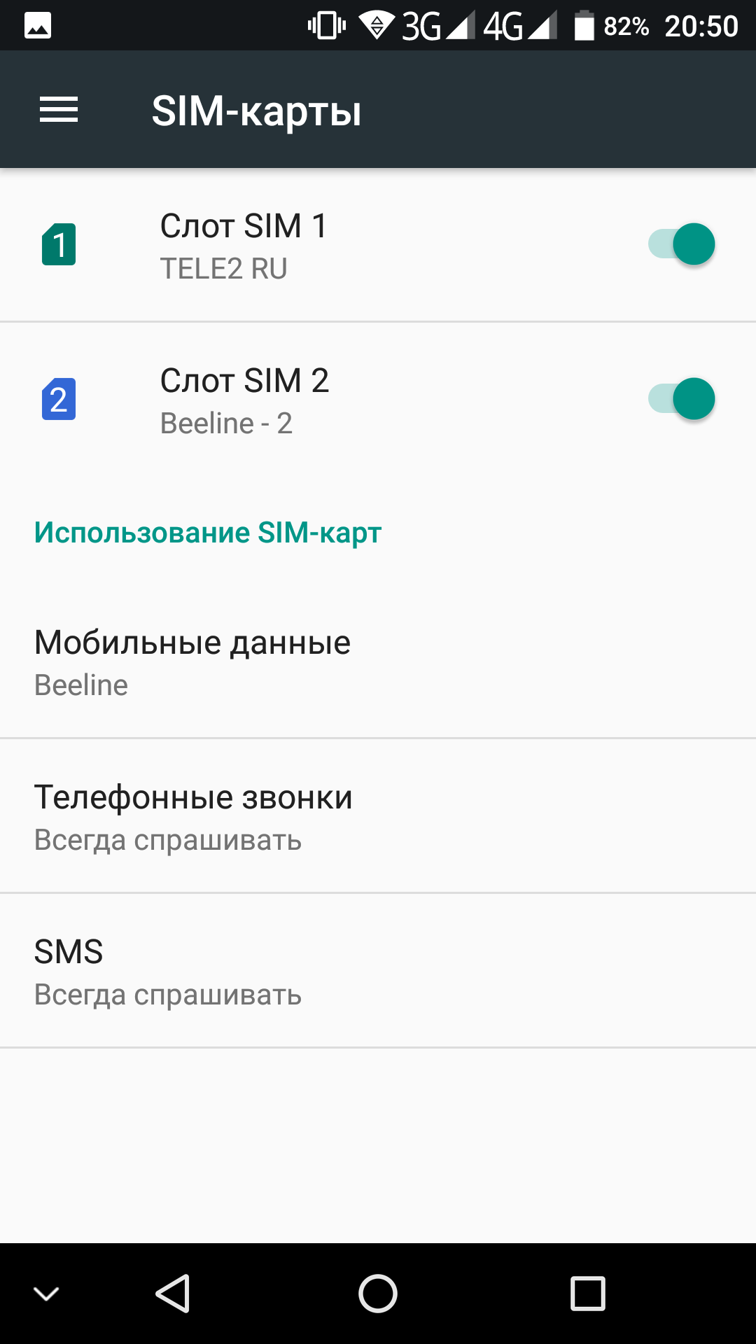Платформа поддерживает активное ожидание обеих SIM-карт в 3G/4G одновременно. То есть SIM-карта может находиться в активном ожидании в сети в 3G, а не только в 2G, даже если для передачи данных в 4G назначена другая карта (например, SIM-карты Beeline в качестве основной и московская Tele2 активны в данном аппарате в ожидании одновременно). Интерфейс позволяет заранее выбрать определенную карту и для отправки SMS, и для голосовых вызовов, и для передачи данных. Работают карты в режиме Dual SIM Dual Standby, радиомодем здесь один.