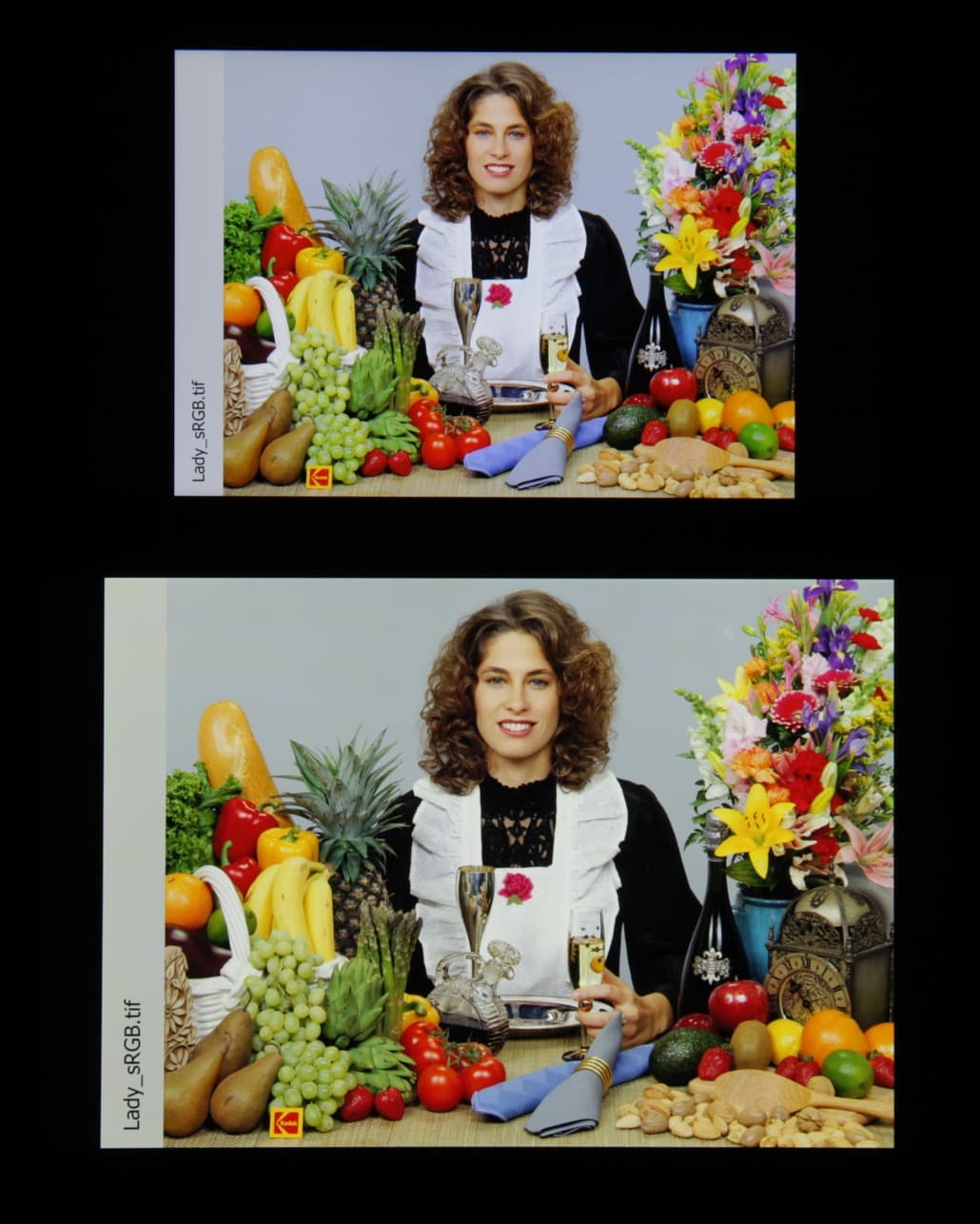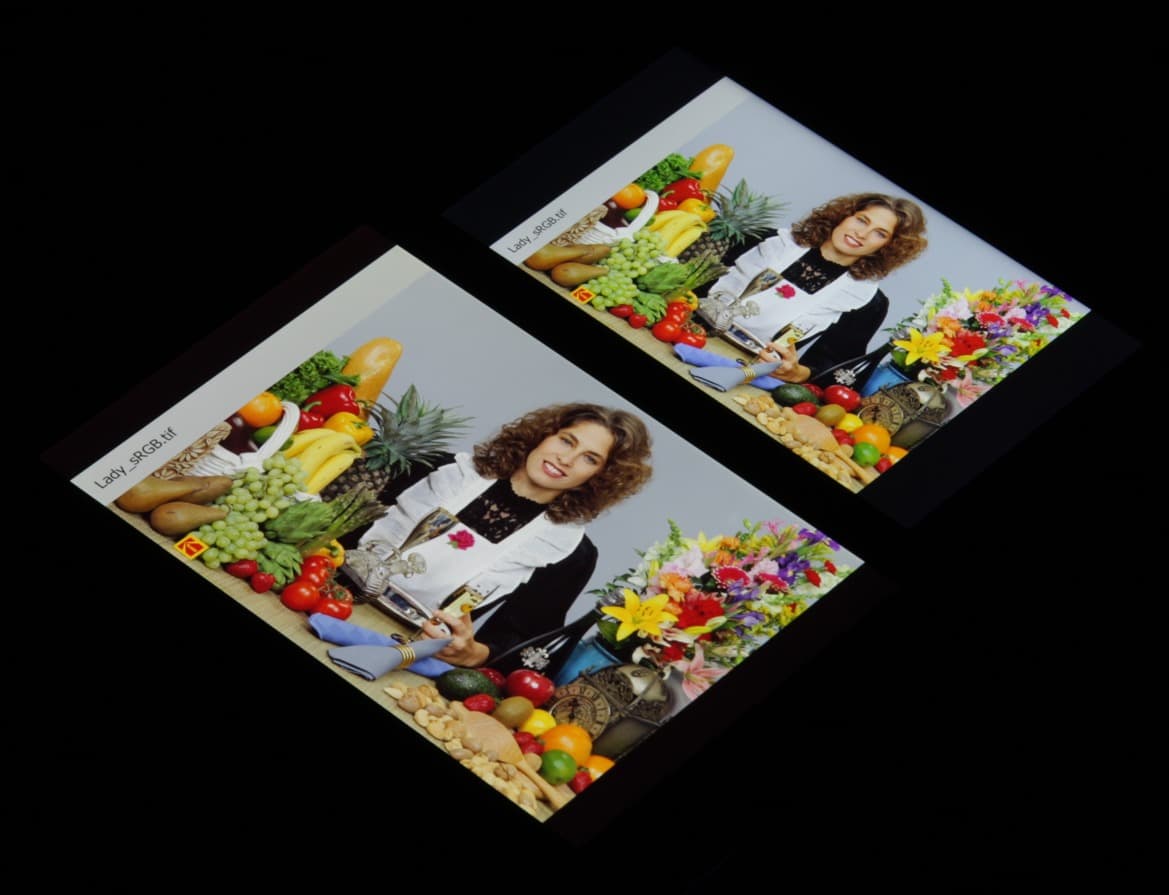 Видно, что цвета не сильно изменились у обоих экранов, и контраст уменьшился в умеренной степени.