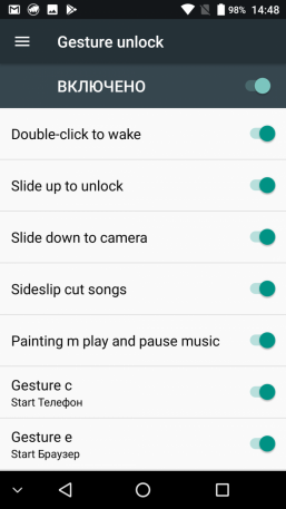 В качестве программной платформы используется ОС Android не самой свежей уже версии 7.0, есть возможность обновления по воздуху (ОТА). Интерфейс и возможности настройки совершенно типичны для безымянного китайского смартфона на платформе MediaTek. Здесь практически нет изменений относительно чистого Android, добавлены лишь работа с жестами (естественно, этот раздел настроек не переведен на русский) и файловый менеджер.