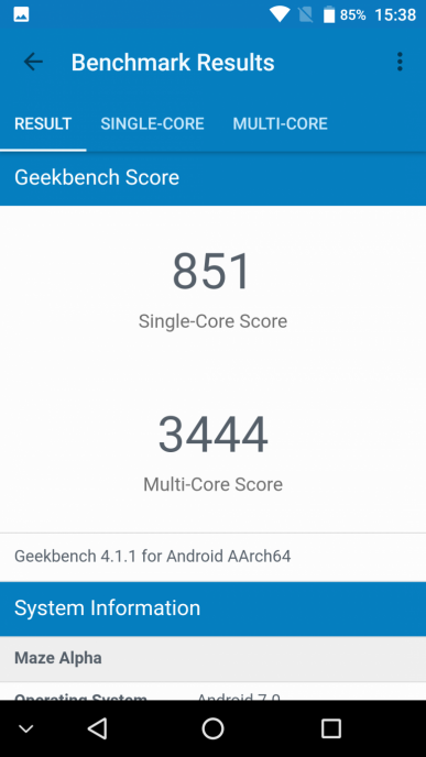 | GeekBench (v4.x) (больше — лучше) | 851/3444 | 873/4014 | 757/2071 | 904/3513 | 672/2867 |