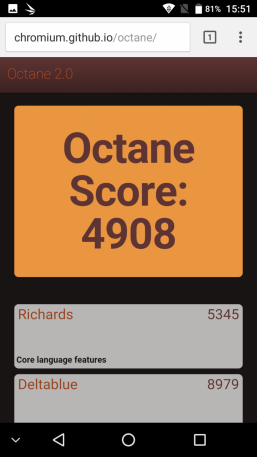 | Google Octane 2 (больше — лучше) | 4908 | 4885 | 3928 | 4828 | 2823 |