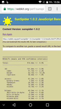 Что касается бенчмарков для оценки скорости движка javascript, то стоит всегда делать скидку на то, что в них результаты существенно зависят от браузера, в котором запускаются, так что сравнение может быть истинно корректным только на одинаковых ОС и браузерах, а такая возможность имеется при тестировании не всегда. В случае с ОС Android мы всегда стараемся использовать Google Chrome.