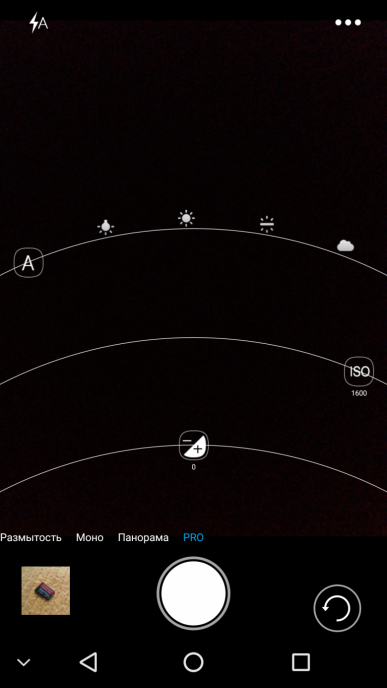 В ручном режиме появляются дугообразные ползунки с изменяемыми значениями светочувствительности (до ISO 1600), баланса белого и экспокоррекции. Возможности сохранения снимков в RAW, естественно, нет.