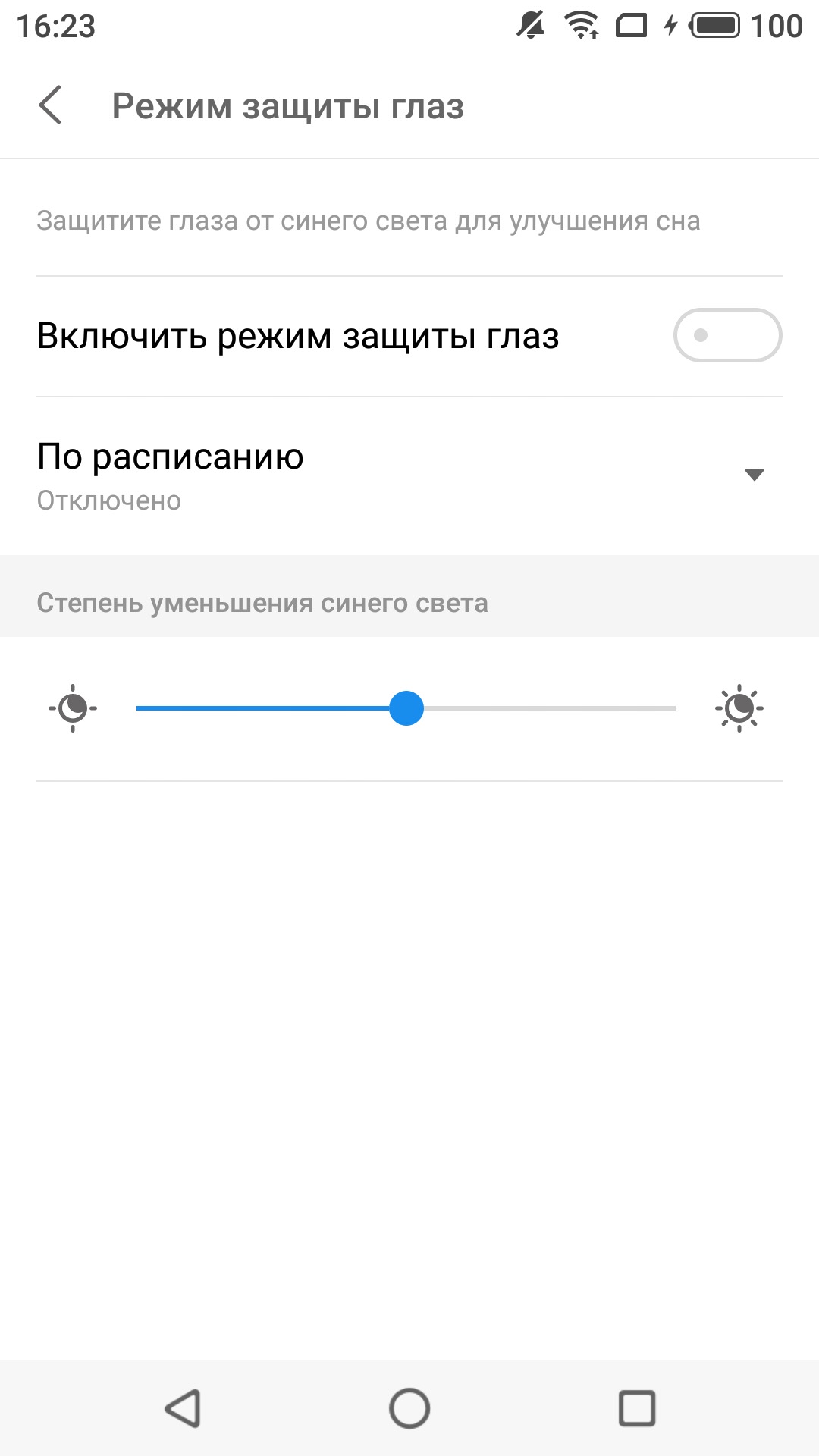 Присутствует настройка, позволяющая снизить интенсивность синей компоненты.