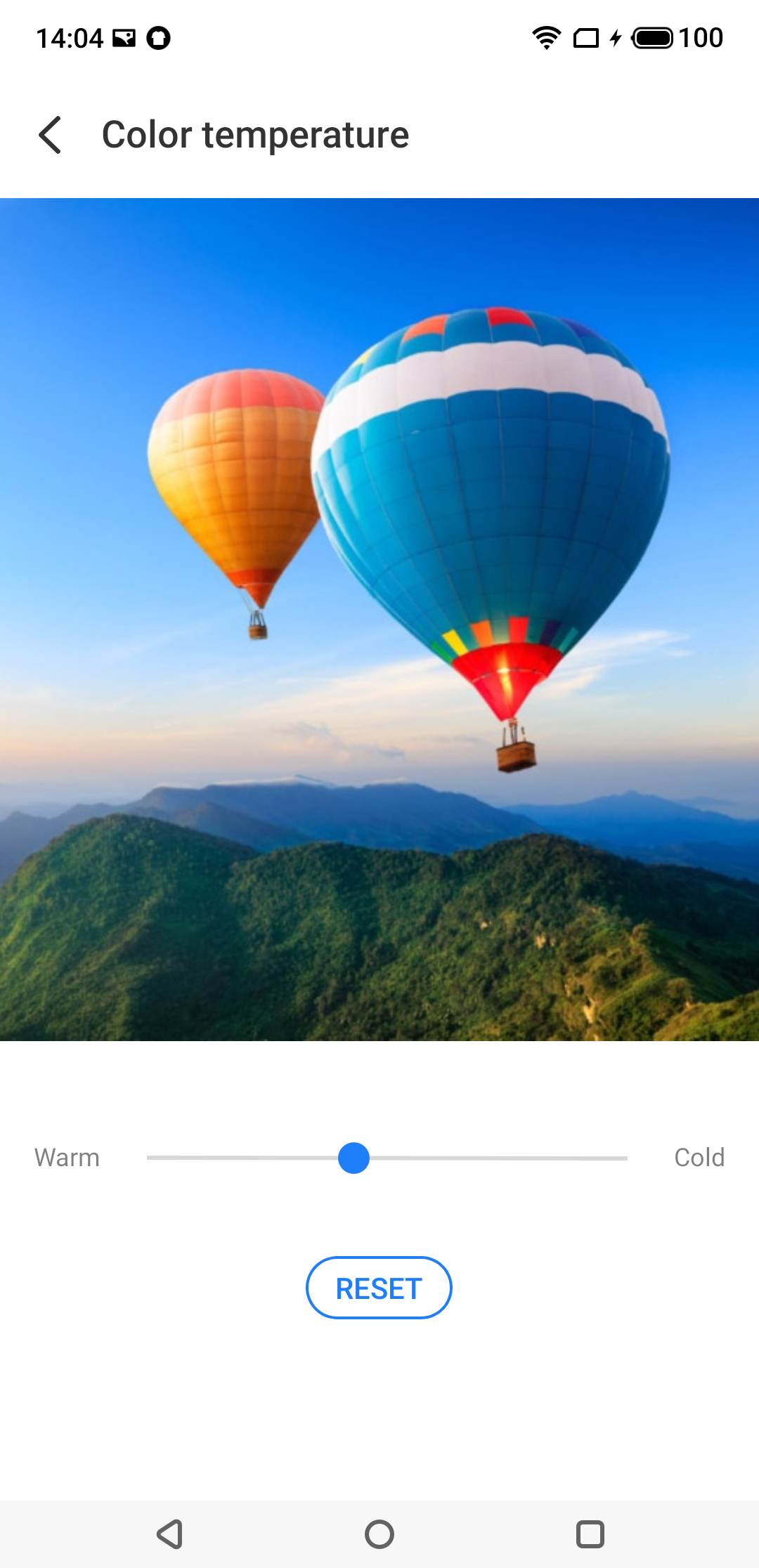 По умолчанию (профиль Adaptive) цветовая температура высоковата, порядка 7400 К. Однако в настройках есть возможность коррекции цветового баланса ползунком цветовой температуры.