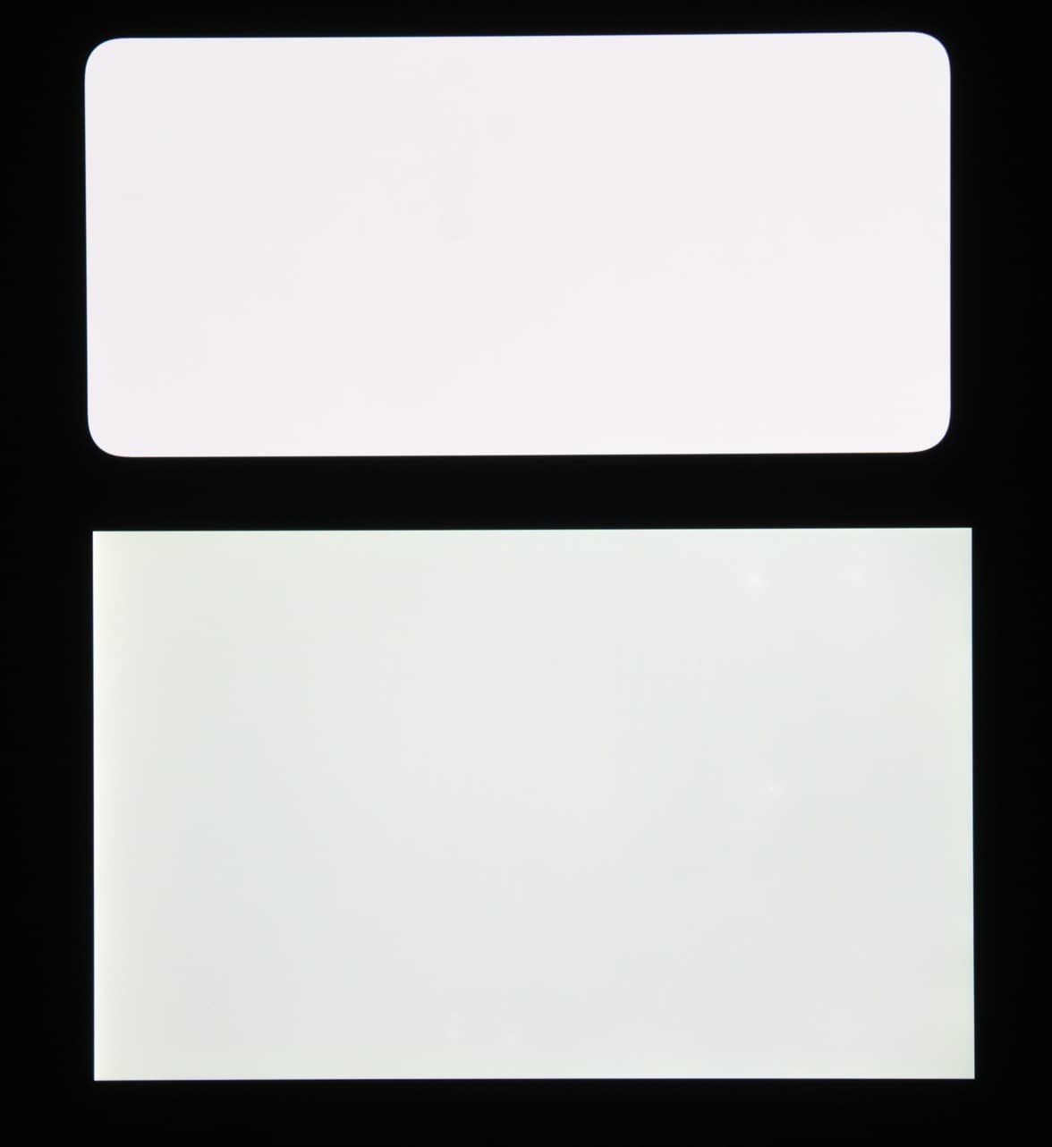 Экран характеризуется великолепными углами обзора. Правда, белый цвет при отклонении даже на небольшие углы приобретает едва заметный сине-зеленый или розоватый оттенок, но черный цвет остается просто черным под любыми углами. Он настолько черный, что параметр контрастности в данном случае неприменим. Для сравнения приведем фотографии, на которых на экраны Meizu 16T (профиль Adaptive) и второго участника сравнения выведены одинаковые изображения, при этом яркость экранов изначально установлена примерно на 200 кд/м², а цветовой баланс на фотоаппарате принудительно переключен на 6500 К.