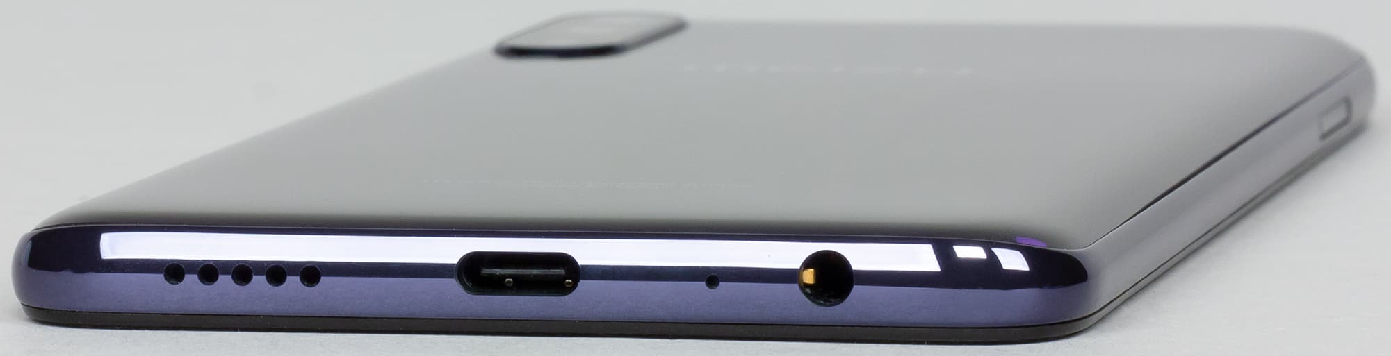 В нижнем торце установлены основной динамик, разговорный микрофон, разъем USB Type-C и 3,5-миллиметровый выход для наушников.