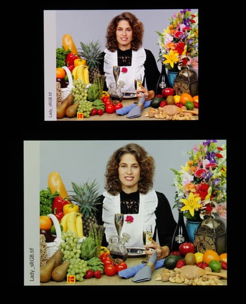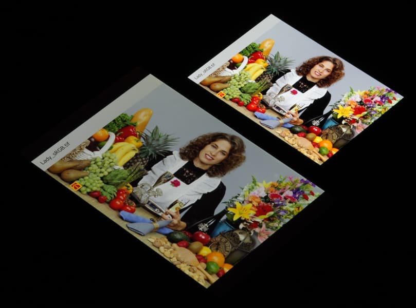 Отметим, что на экранах с широким цветовым охватом (без соответствующей коррекции) цвета́ обычных изображений, оптимизированных для устройств sRGB, выглядят неестественно насыщенными. Отсюда и рекомендация: в большинстве случаев смотреть кино, фотографии и все естественное лучше при выборе профиля Standard, и только если фотография сделана на установке Adobe RGB, имеет смысл переключить профиль на Photo. Аналогично, профиль Adaptive уместен при просмотре видеоматериала с охватом DCI-P3, принятым в цифровом кинематографе.