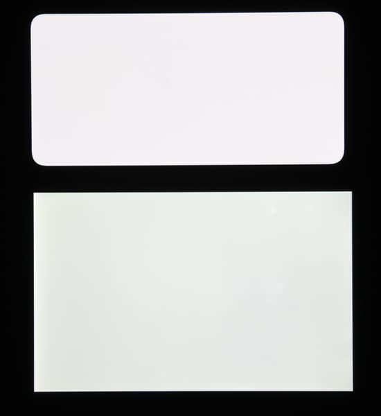 Яркость под углом у обоих экранов заметно уменьшилась (чтобы избежать сильного затемнения, выдержка увеличена в сравнении с предыдущими фотографиями), но в случае тестируемого смартфона падение яркости выражено гораздо меньше. В итоге при формально одинаковой яркости экран Meizu 16T визуально выглядит гораздо более ярким (в сравнении с ЖК-экранами), так как на экран мобильного устройства часто приходится смотреть как минимум под небольшим углом.